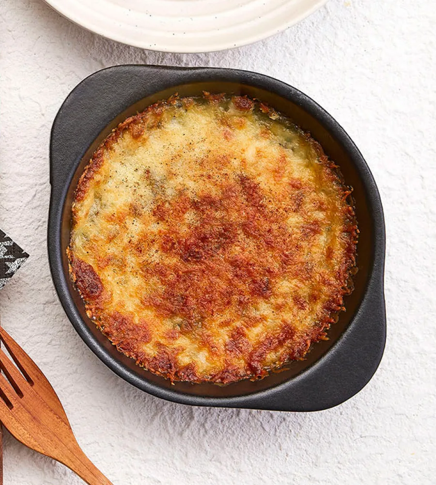 ผักโขมอบชีส มอสซาเรลล่าชีส เฟต้าชีส และเชดดาร์ชีส