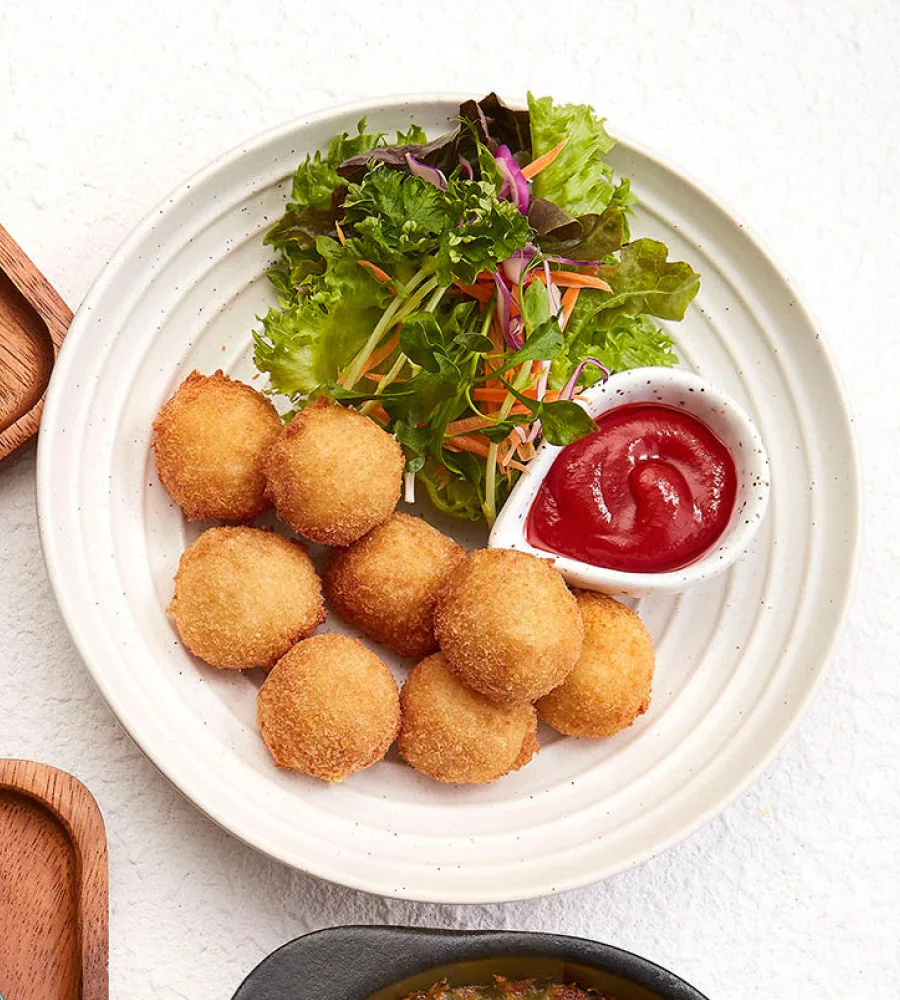 โครเกต์มันฝรั่ง พาเมซาน และเชดดาร์ชีส