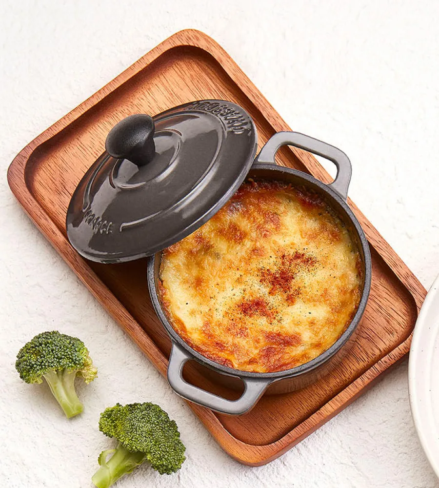 กราแตงเห็ดและบรอกโคลี มอสซาเรลล่าชีส เฟต้าชีส และเชดดาร์ชีส